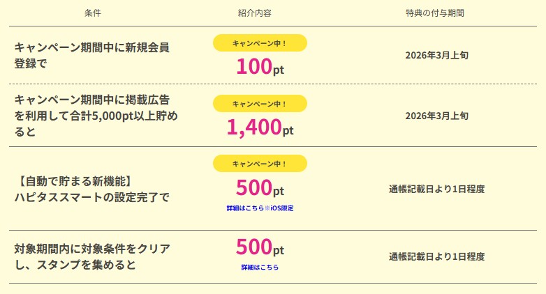 ③自動で貯まる新機能「ハピタススマート」を設定すれば、さらに500ptプレゼント(iOS限定)