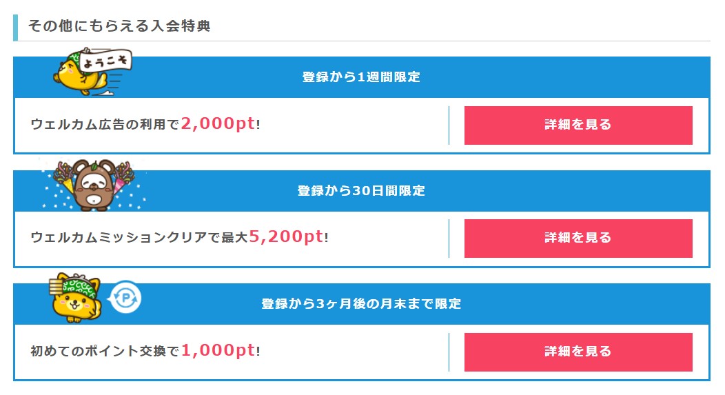 登録日の3ヶ月後の月末までに初めてのポイント交換で1,000P