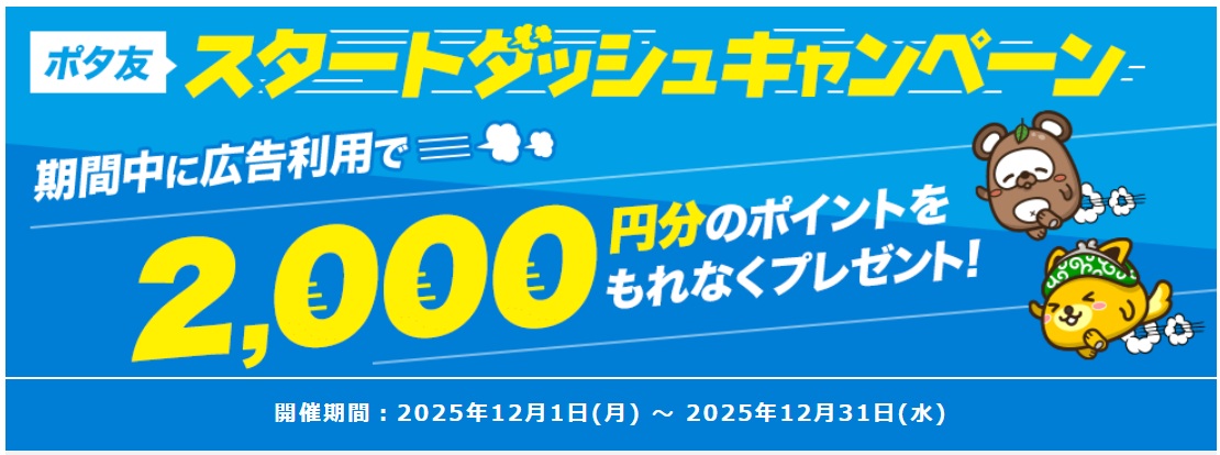 の、ポイントインカムが『ポタ友スタートダッシュキャンペーン』中!